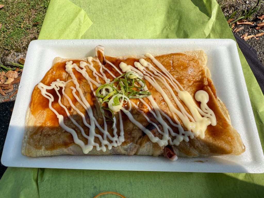 食べ物を提供する出店やキッチンカーが複数ありましたが、いか焼きのキッチンカーで関西風いか焼きを購入!
