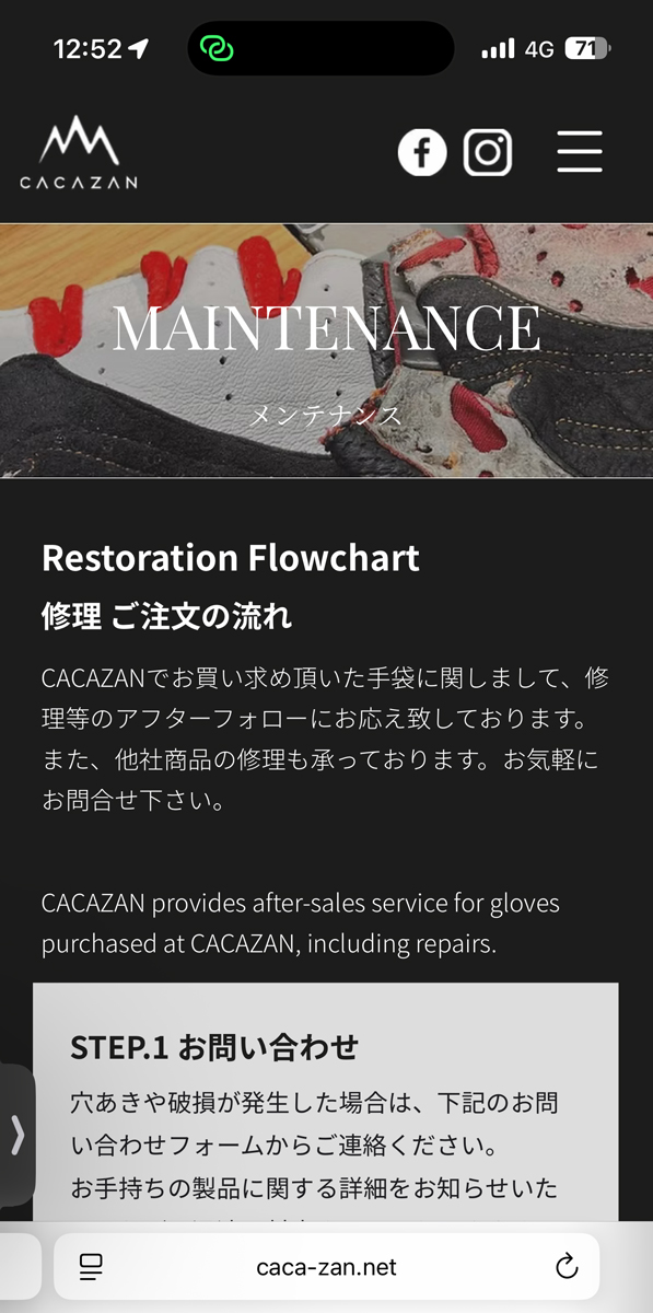 CACAZANさんの公式ホームページに修理までの流れがご紹介されています。